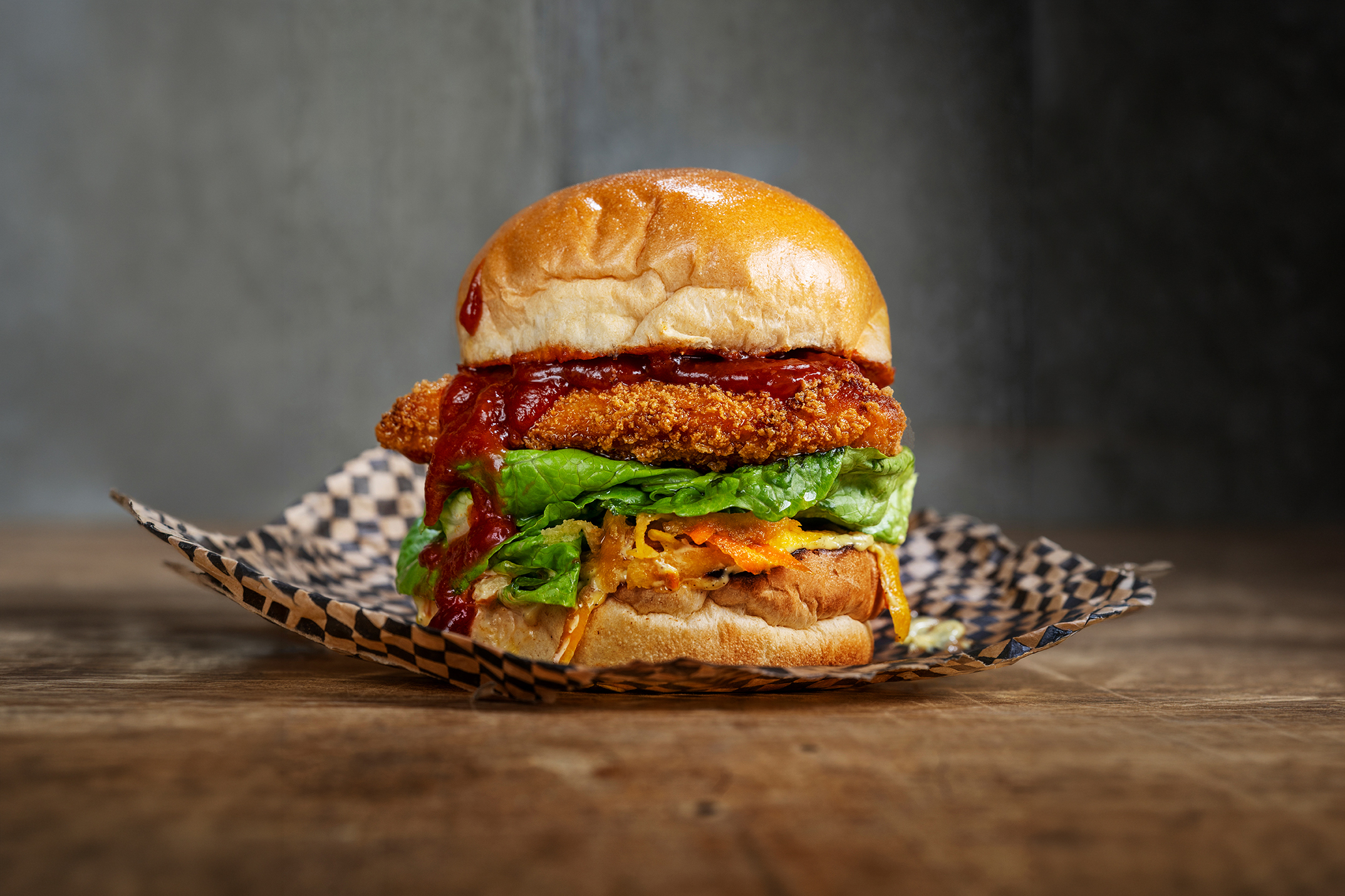 Sprøstekt kyllingburger med asiatiske smaker